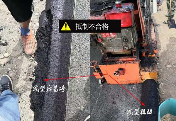 影響攔水帶正常成型的大多數(shù)原因都出現(xiàn)瀝青砂的配比上面。做瀝青砂攔水帶是不能使用公路攤鋪的瀝青砂的。而且對瀝青砂中瀝青油的配比不能過高。一般情況下瀝青油的配比控制在6%左右,最大不能超過7.5%。