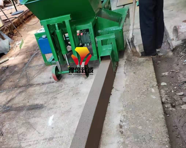 施工時:先將機(jī)器運(yùn)至施工地點,將機(jī)器高度降至貼于地面,模具前方需離地面1厘米左右,防止模具卡住地面。現(xiàn)澆混凝土?xí)r候,注意混凝土塌落度不宜太大。以免路側(cè)石無法成型或坍塌。